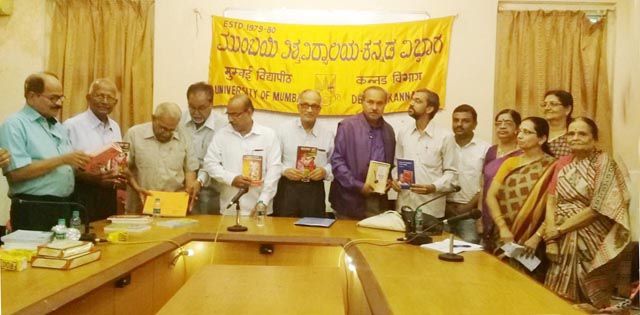 | Mumbai University, Kannada department and Karnataka Sangha Mumbai in a joint programme held at Kalina campus, Vidyanagari on Saturday released four books written by different authors. Former president of Karnataka Nataka Academy, J Lokesh, lit the lamp and released the books.