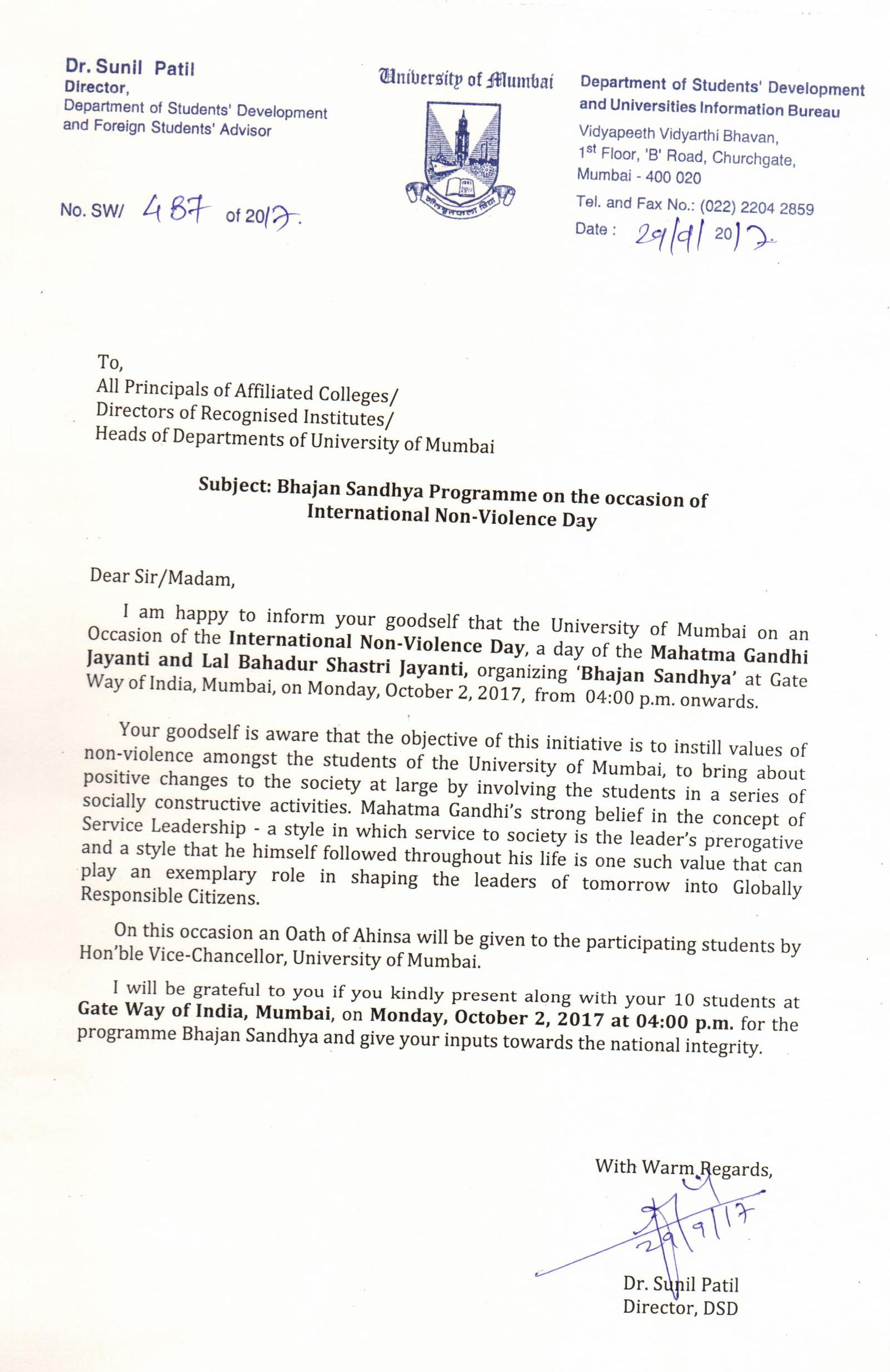 - Deputation of Teachers from your College/Institute/Department for ‘Mind Training Camp’ organised by the University of Mumbai on September 15, 2017